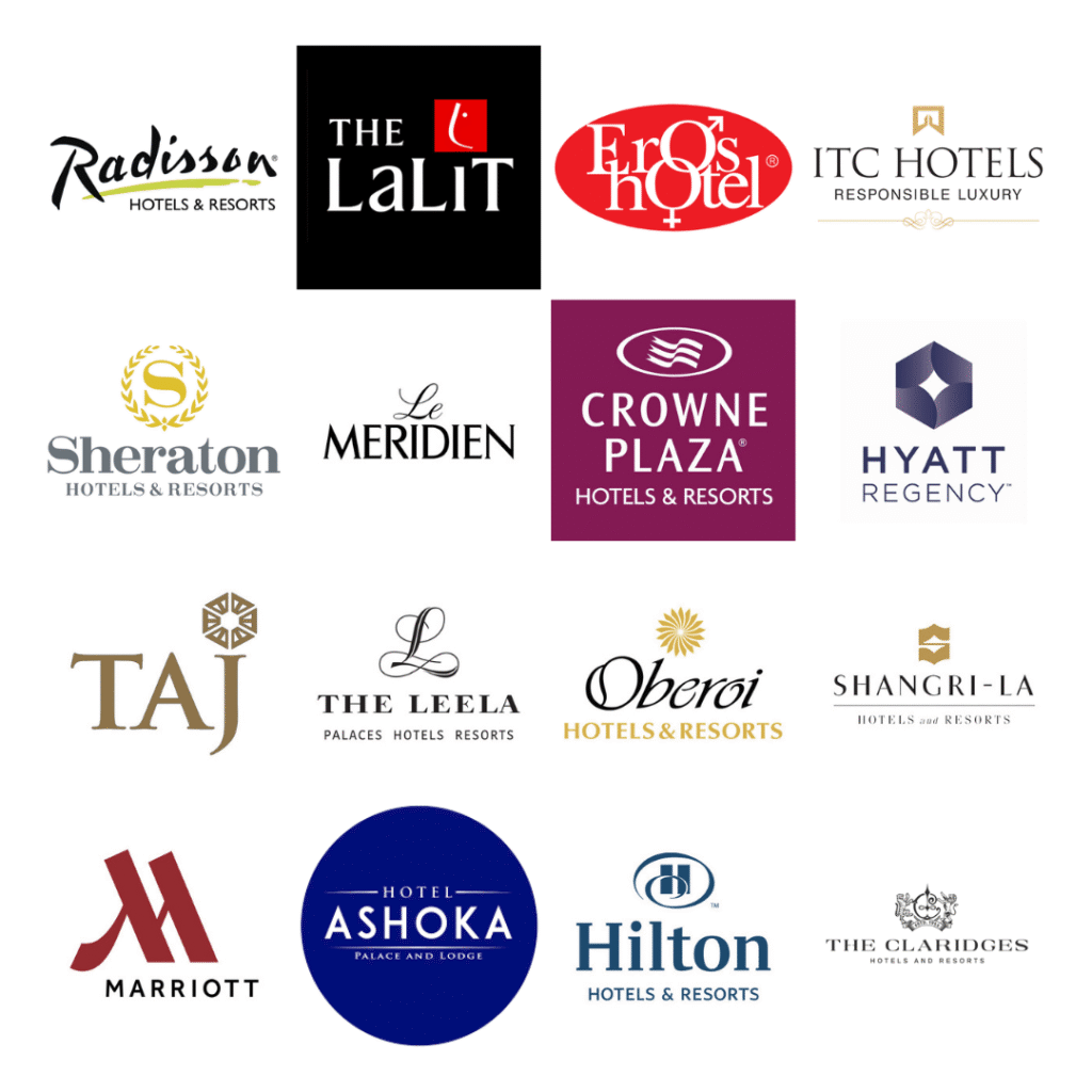 Taj Hotels, Oberoi Group, ITC Hotels, Marriott, Radisson Blu, etc.